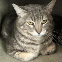 Sable is a pretty silvery colored tabby with a white mouth. According to Sable's rescuer, she is the "perfect cat"...