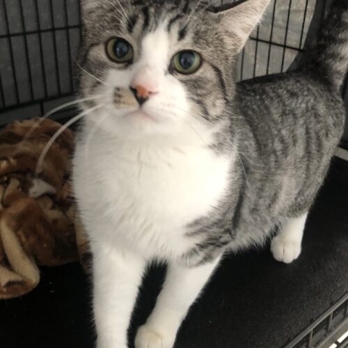 Aero came to Kitty City having aready been neutered. It must have been presumed that he was an RTF (return to field) cat because he has a tipped left ear. However, we soon discovered that Aero is a nice, friendly boy. We just had to take it easy at first and go slow. Aero is deserving of being an indoor pet in an adopted home.