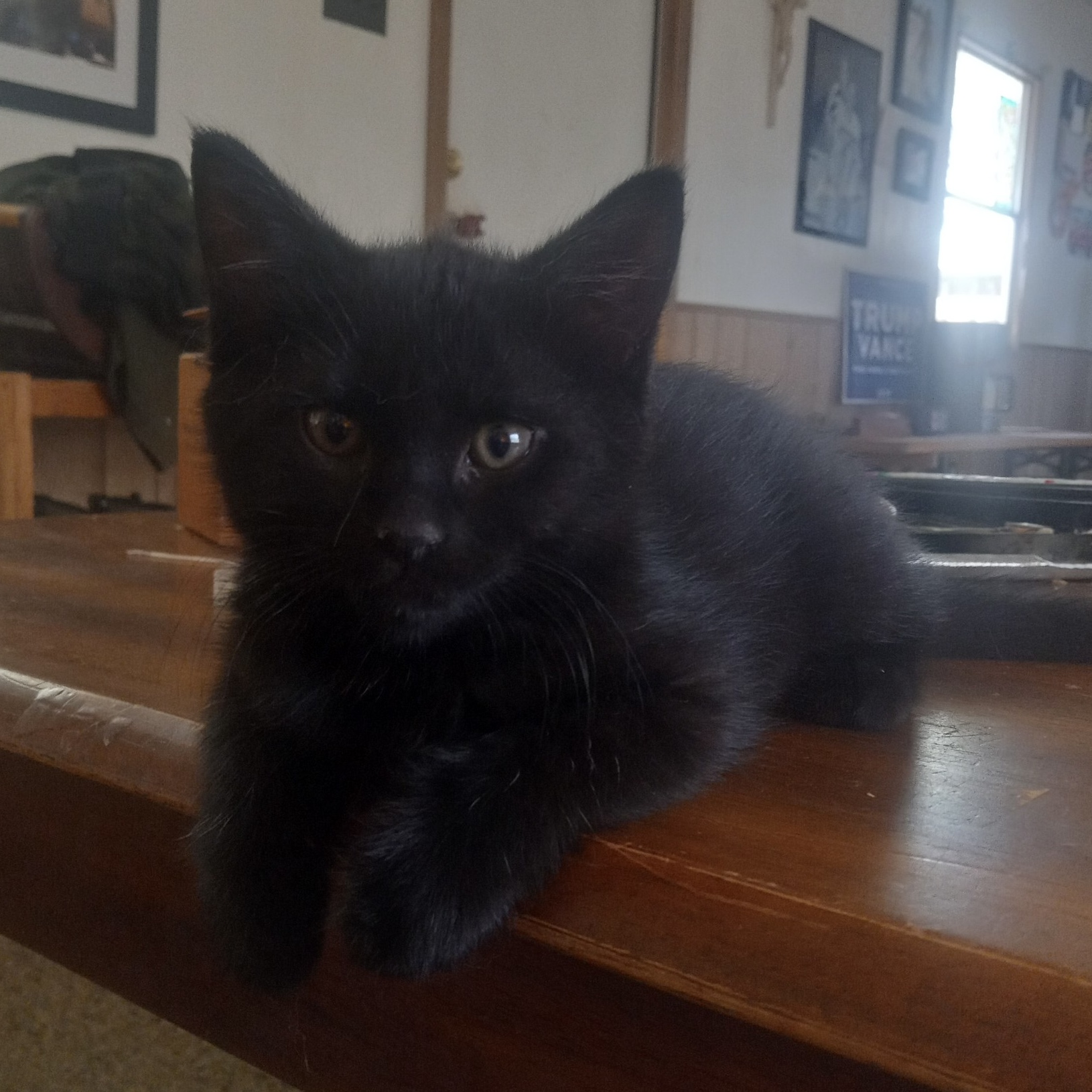Airman is one of two nearly identical black brothers. The brother is Sailor. The only difference is that Airman has a wisp of white fur on his tummy. And Airman is slightly heavier than Sailor. Their similarities extend to their personalities as well. Their foster says their personalities are A-plus. They run around like little race cars. They love exploring new environments, and it is quite obvious Airman and Sailor take their playtime very seriously. These boys are super inquisitive. They are real fun brothers.