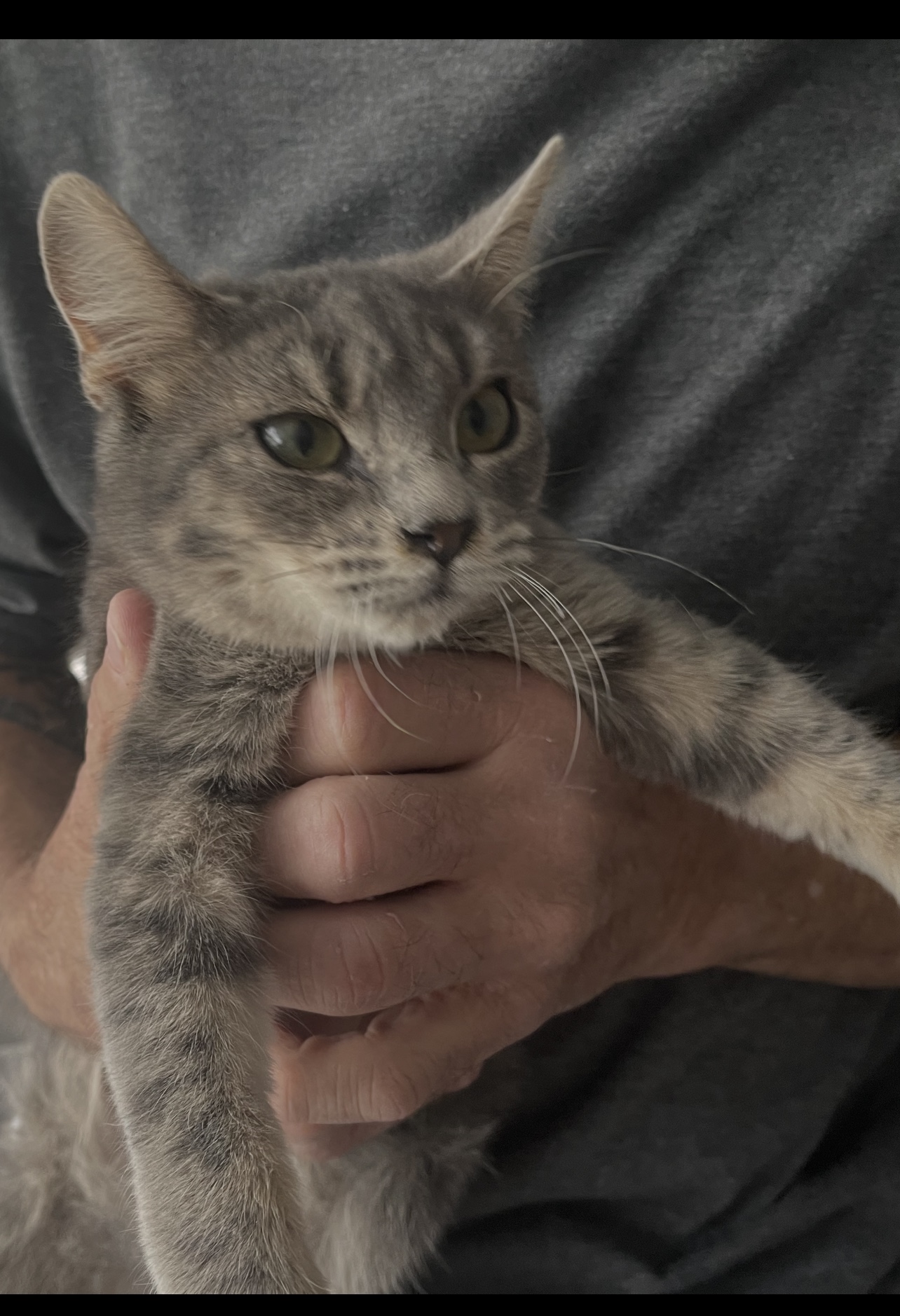 Alex is a very gentle, quiet and complacent guy. When he's picked up and held, he calmly remains still just soaking in the admiration from his person. He is quite a kitty.