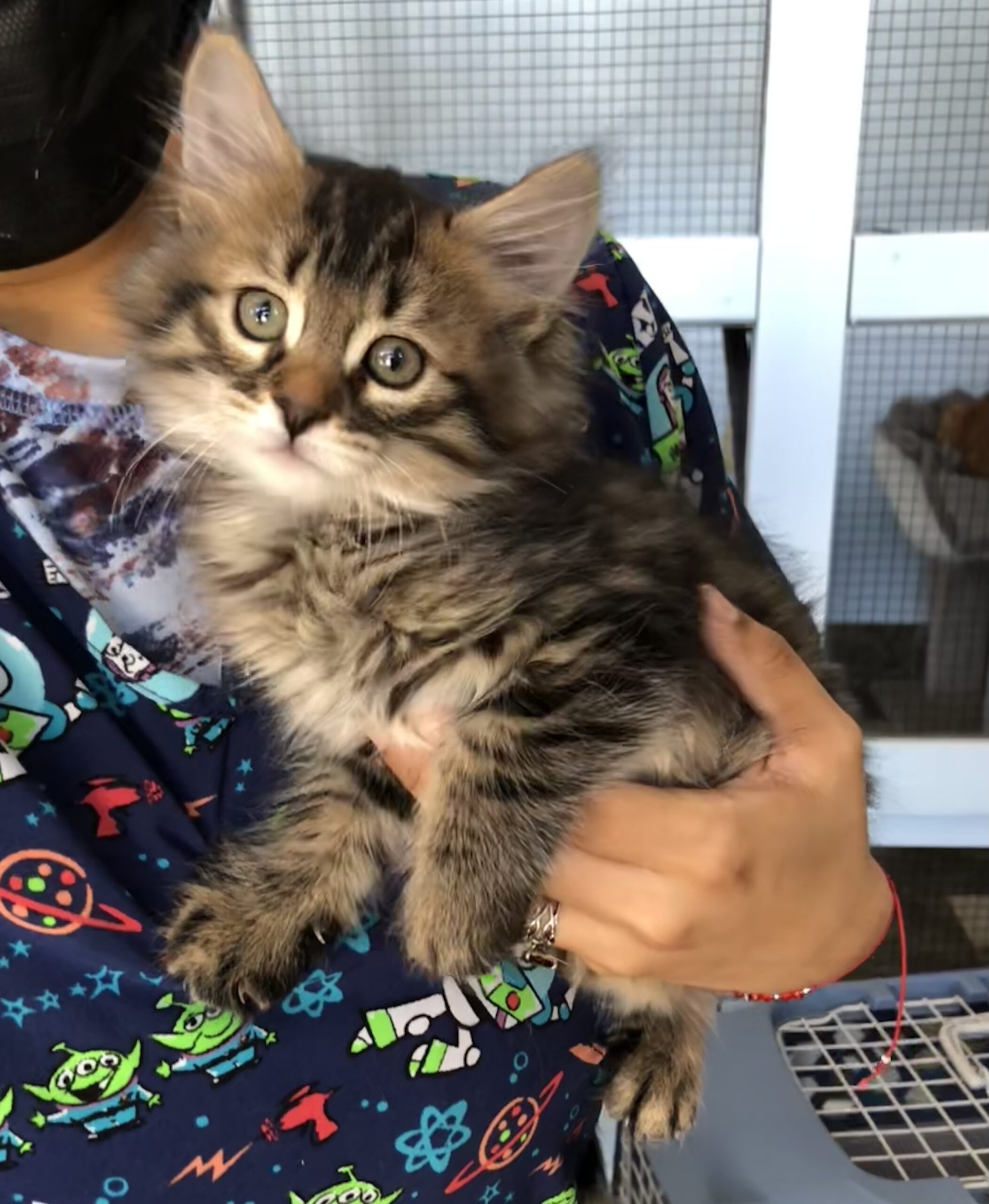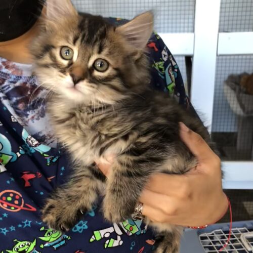 Angelica is a real beauty. She is a mixture of tabby and tortoiseshell and has a blending of gray, black, brown, orange and white with gorgeous markings plus large, expressive eyes lined with white. Angelica is one of a litter of 4 kittens that were rescued along with their mama Fenix in Mescalero, NM. They were taken into a loving foster home where mama nursed, raised and weaned them. The mama will be adopted by the foster. The kittens are available for adoption. The kittens are well socialized and accustomed to humans, having interacted with their foster from a very young age. They are all playful, people-oriented cuddlers, and they love to climb!