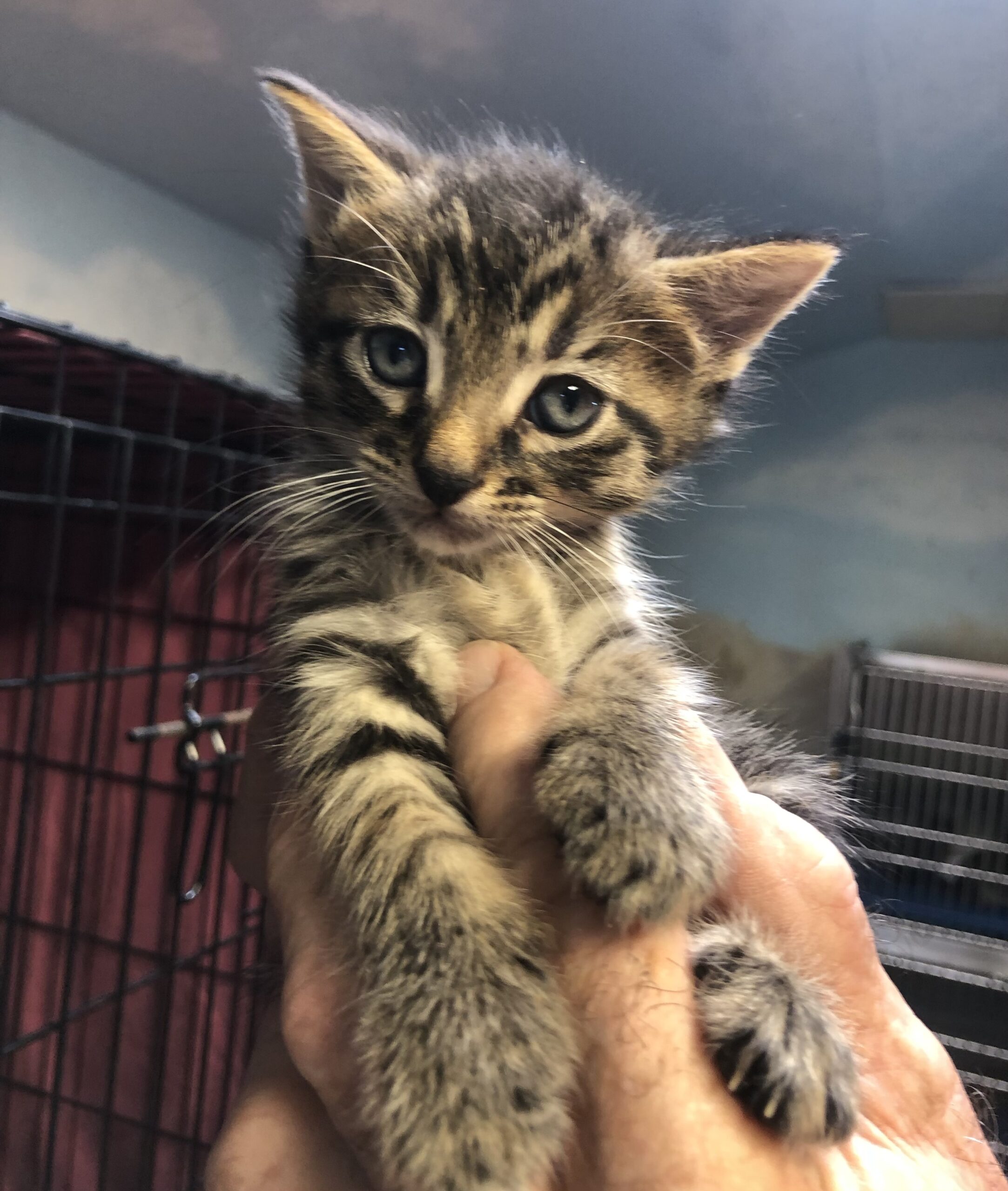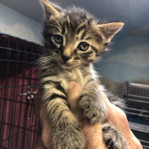 Archer is one of mama Christine's 4 Star Trek baby captains. Archer is a stunning gray tabby with prominent black stripes and tan markings. The littermates were raised by mama at Kitty City.