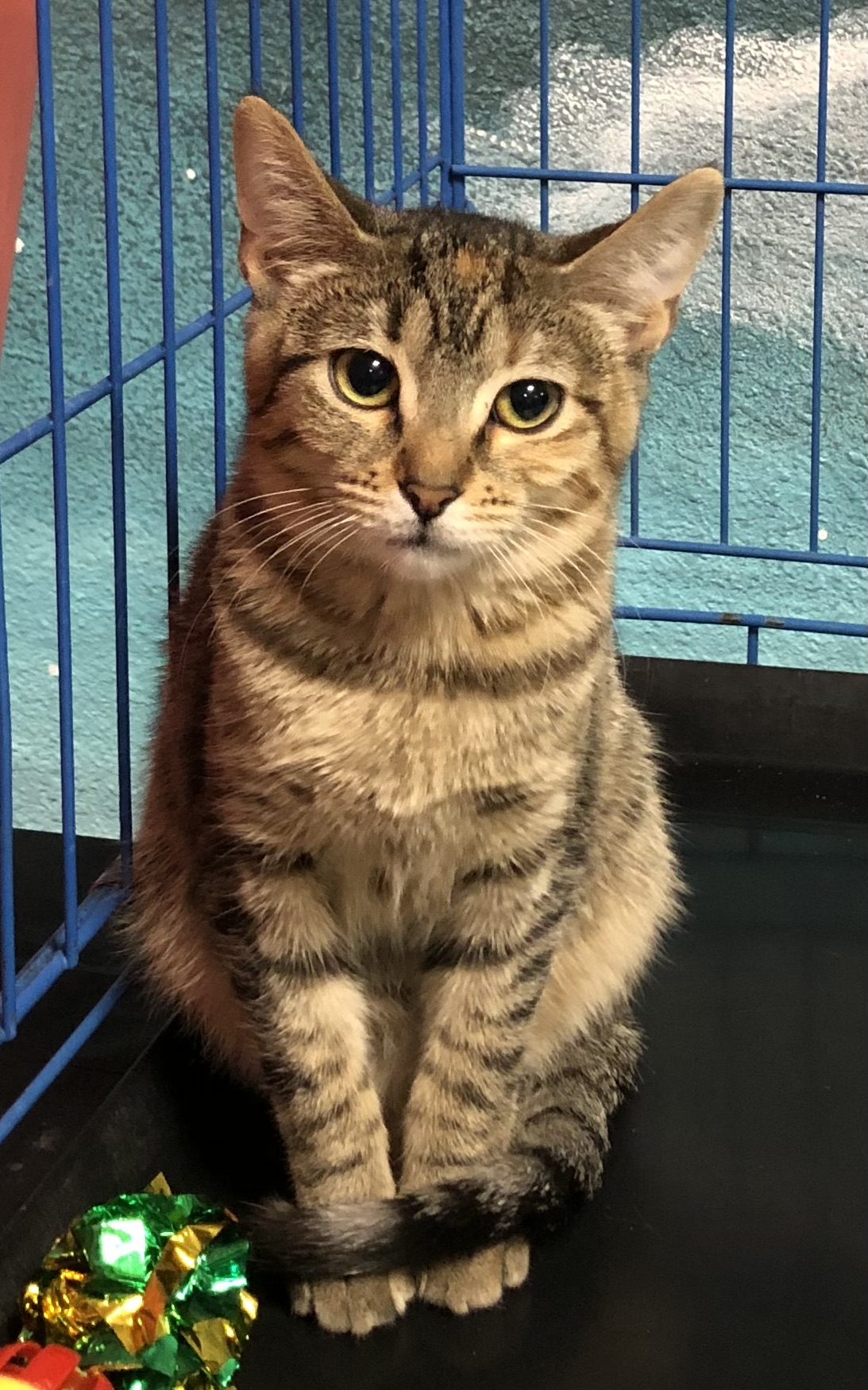 Autumn is a bit shy and timid, having been a stray that was picked up by Alamogordo Animal Control. Autumn was taken into a loving foster home where she is being socialized and shown lots of affection. Autumn is learning to become brave when humans are holding and petting her. When she is comforted, she purrs loudly with great appreciation for the love and attention shown to her. Autumn voices her opinion when other kittens/cats come near her. She is slowly learning they aren't a harmful threat.