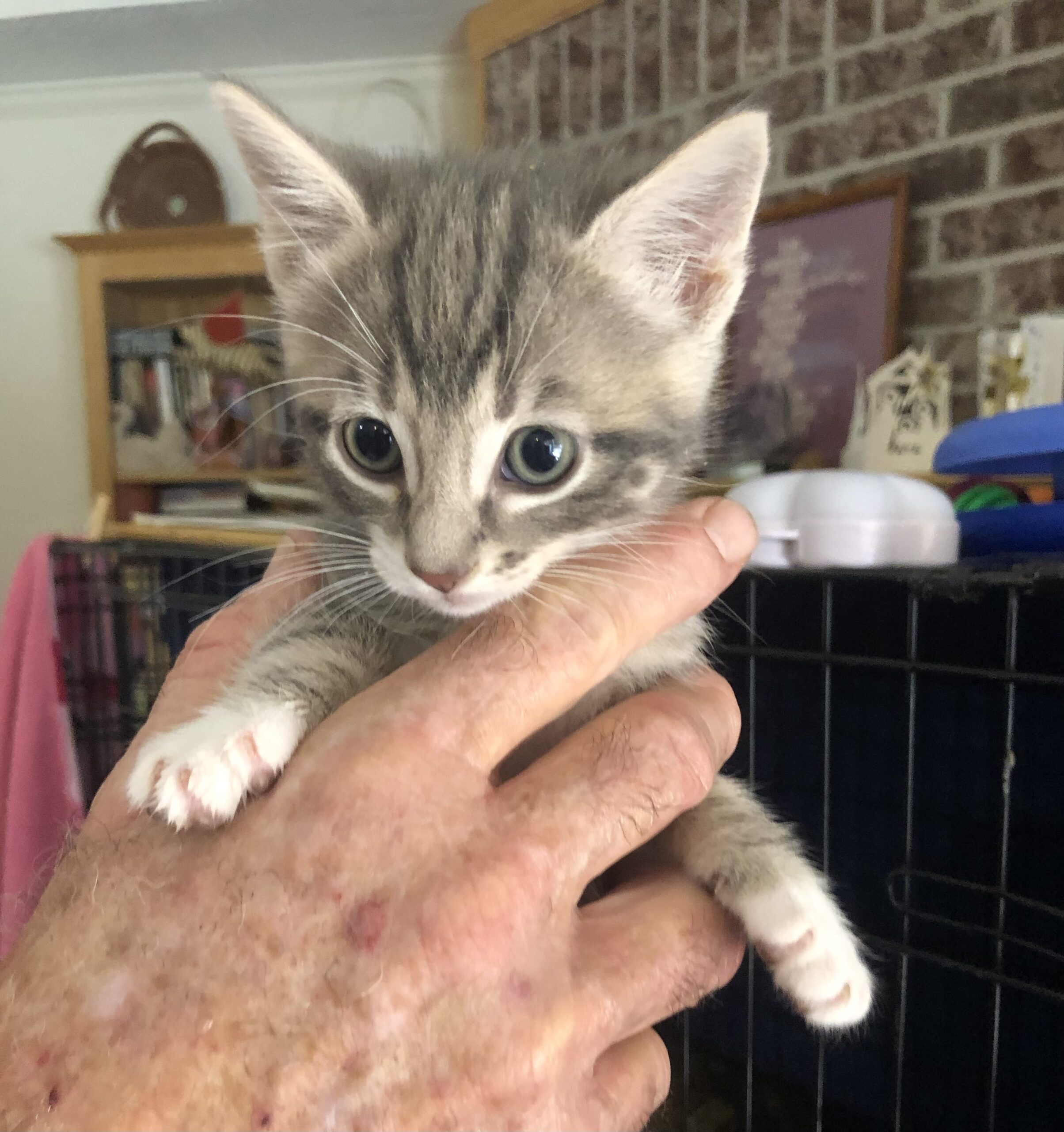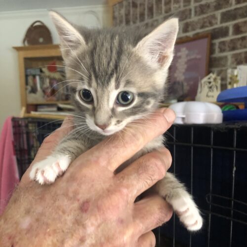 Bolero is one of a litter of 3 kittens born to Mambo. He is a handsome gray tabby with white paws. Mambo and her babies were cared for in a foster home.