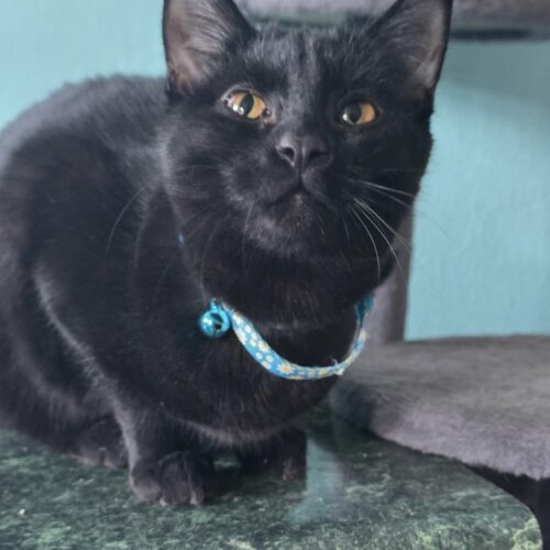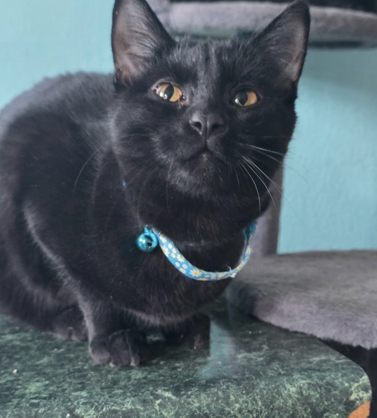 Buff and her look-alike sister Biff were rescued as strays from the outdoors along with their mama Mazey. The only way to distingish one from the other is that Biff has slightly longer fur than Buff.