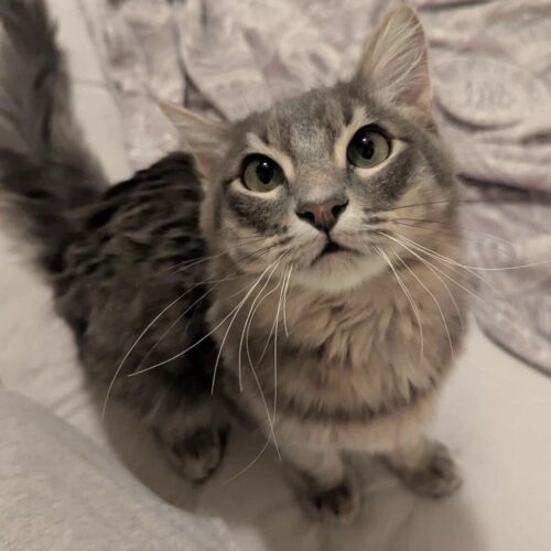 Cardamom is a purring ball of joy! This affectionate cutie purrs at the slightest touch and has a playful spirit that keeps everyone entertained. The biggest of the litter and an appetite to match, he never says no to a good meal. Cardamom is full of charm and, although he can be a little shy at first, once he warms up, he's all about playtime. He has an irresistibly cute face and he's a gentle soul ready to bring joy to a loving home.