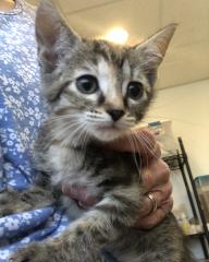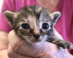 Chickadee is being raised by her adopted fur mama Sassafras. Chickadee arrived at Kitty City alone very young and tiny. She was placed with Sassafras and her four young babies and was accepted and adopted by Sassafras. Chickadee will be weaned in early June 2025. She can be pre-adopted with payment of her $110 adoption fee.