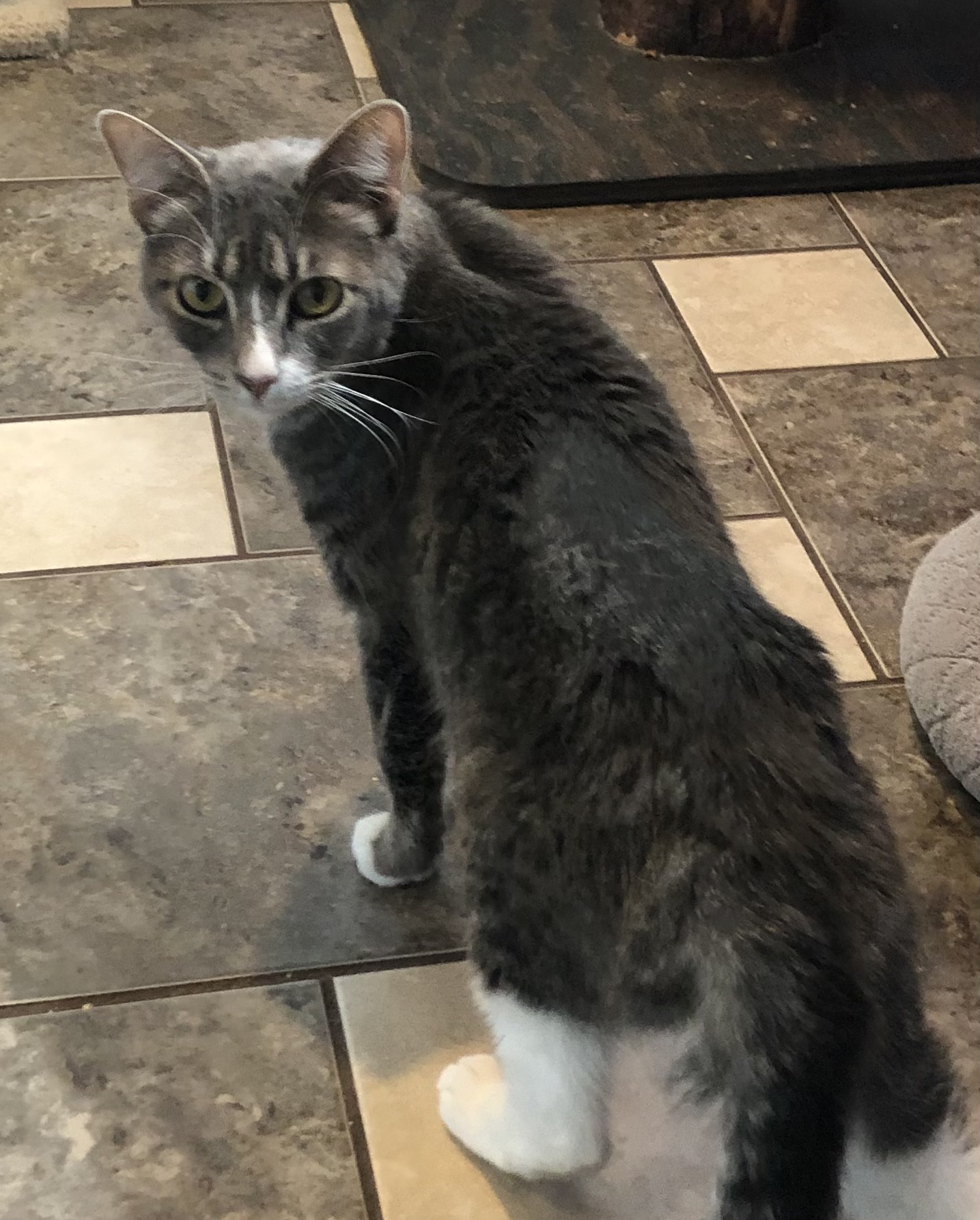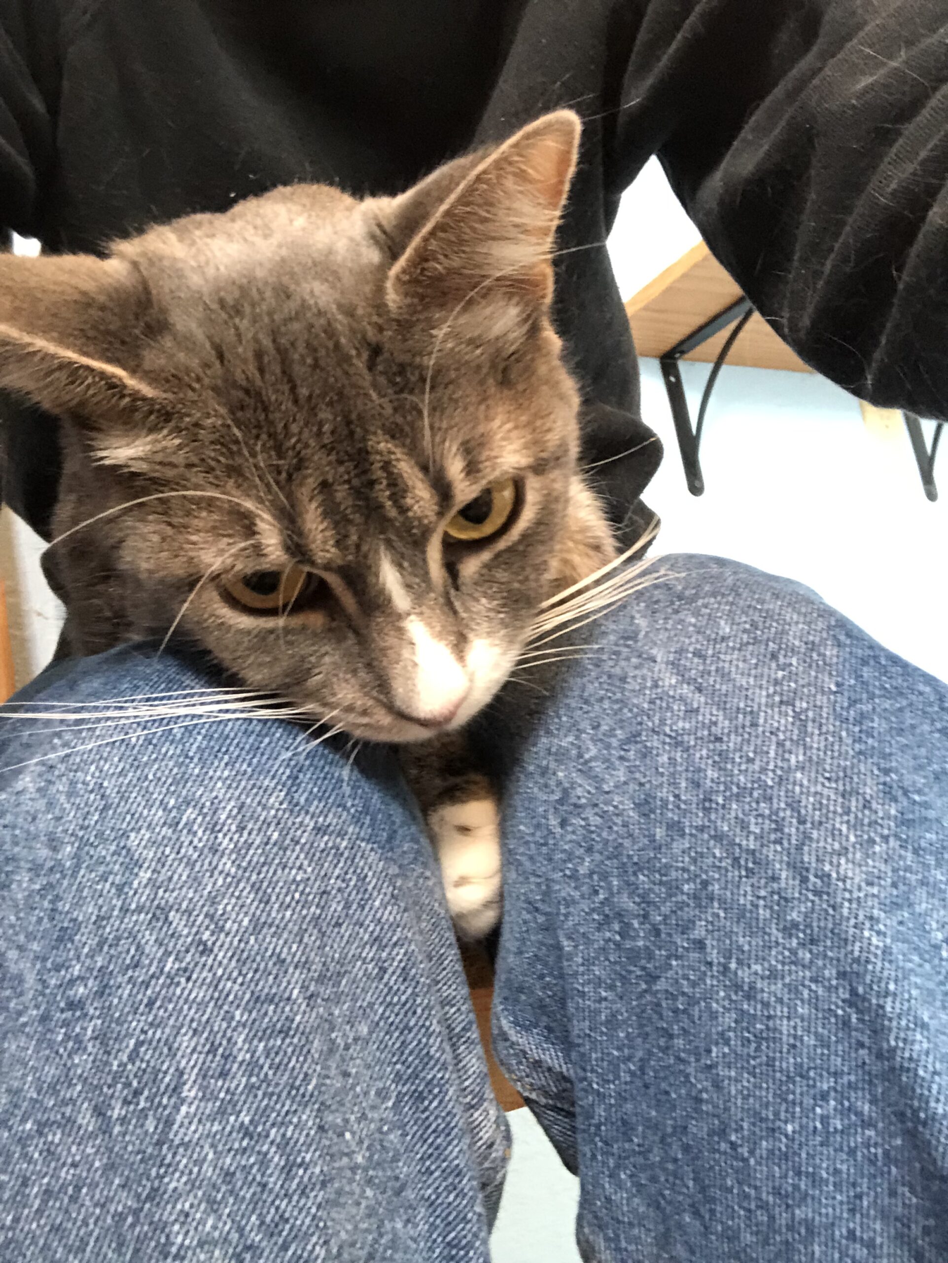 Christine came to Kitty City very pregnant. She gave birth to 4 male kittens in September 2025. Now that all of her kittens have adopted, we began focusing more on Christine. She was a good and very protective mama. We have found Christine to be a naturally sweet cat who loves to be petted. She should be approached slowly by strangers, but once she has determined they are not a threat to her, she will welcome them as her friends. Christine is a lap kitty who enjoys attention from humans.