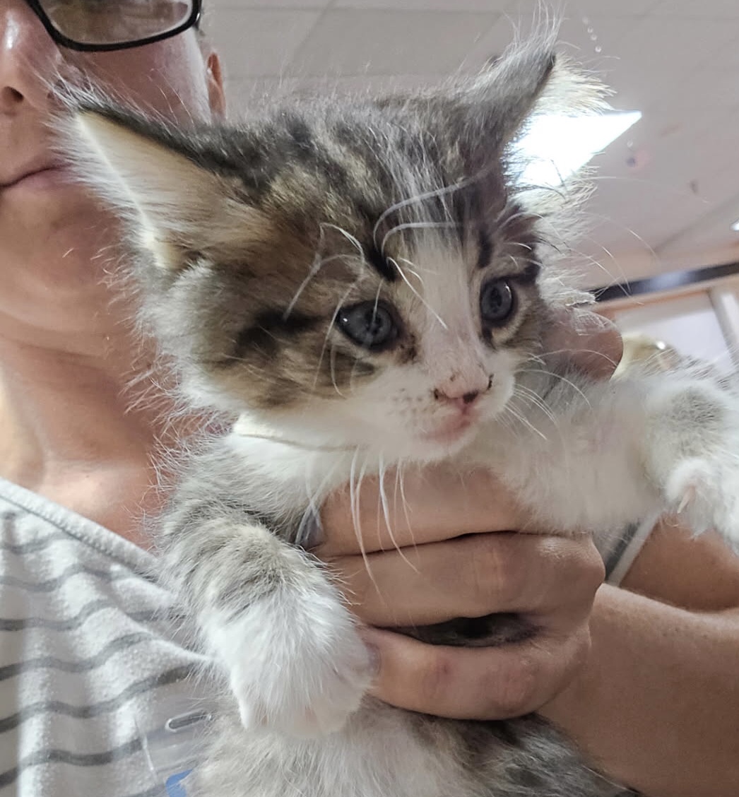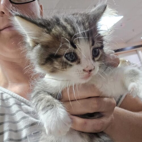 Born and raised in a loving foster home. His foster says Dagger is a clingy lap-cat runt.