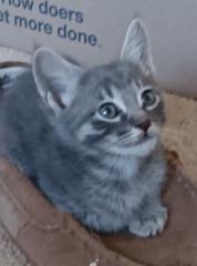 Harper is a cutie who looks like she knows how to get into trouble. Harper is the boldest of the litter and extremely playful! She is known as the "leader of the pack." She is a gray tabby with white eyeliner.