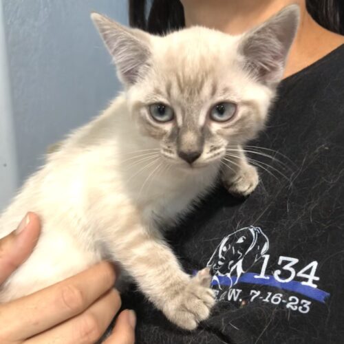 Heather, her 3 littermates, and their mama arrived Kitty City on 9/19/25 from Mescalero, New Mexico. Mama and all her kittens are beautiful, friendly and affectionate. They have obviously been well cared for. Heather is the only Siamese in the litter. She is a lynx point with facial tabby features.