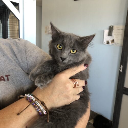 Houdini lives up to her name. As a small kitten, she escaped from her kennel, and her foster could not figure out how she was doing it. Houdini was raised along with her fur mama and littermates in a loving foster home where she learned to overcome quite a bit of her shyness. She is still cautious with new faces and will require time, patience and love from her adopter to fully realize her potential.
