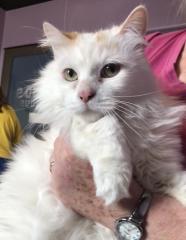 Calvin has had some rough times. For a time in late 2024 he was taken to Alamogordo Animal Control. He was adopted but was returned 4 months later. Calvin is now comfortable and warm at Kitty City while he awaits his forever person.