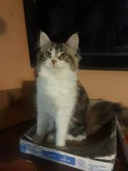 Little Missy frequently shows mouthing affection in the form of licks and nibbles. She might take time to warm up to new people. Missy gets along mostly with her sister Ahab. She is not keen on being held, although she will sit in a willing lap for hours.