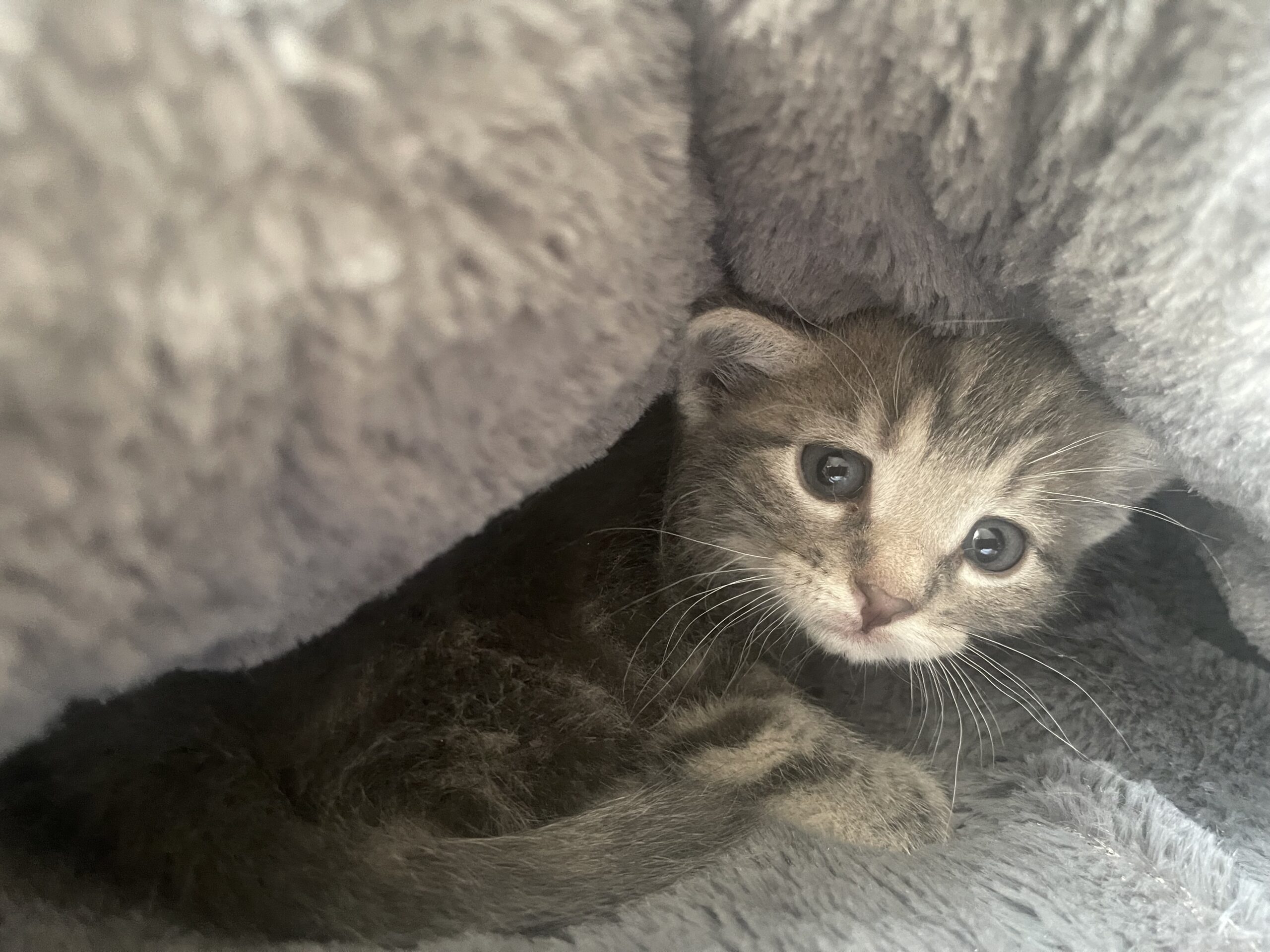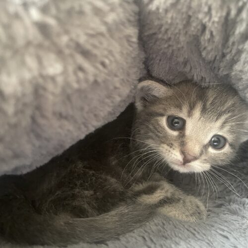 Malachi and his 3 littermates arrived at Kitty City at only around 5 weeks old. They are now in a loving foster home where they are being given excellent care and socializing nicely. They will be 8 weeks old approximately April 25, when they will be given their first FVRCP vaccination. The kittens can be pre-adopted with payment of their $120 adoption fee.
