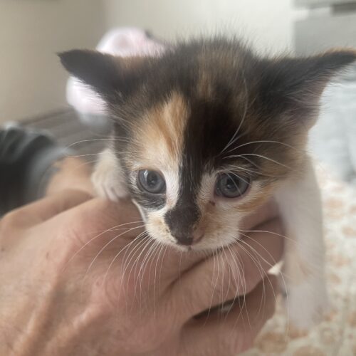 Maya and her 3 littermates arrived at Kitty City at only around 5 weeks old. They are now in a loving foster home where they are being given excellent care and socializing nicely. They will be 8 weeks old approximately April 25, when they will be given their first FVRCP vaccination. The kittens can be pre-adopted with payment of their $120 adoption fee.