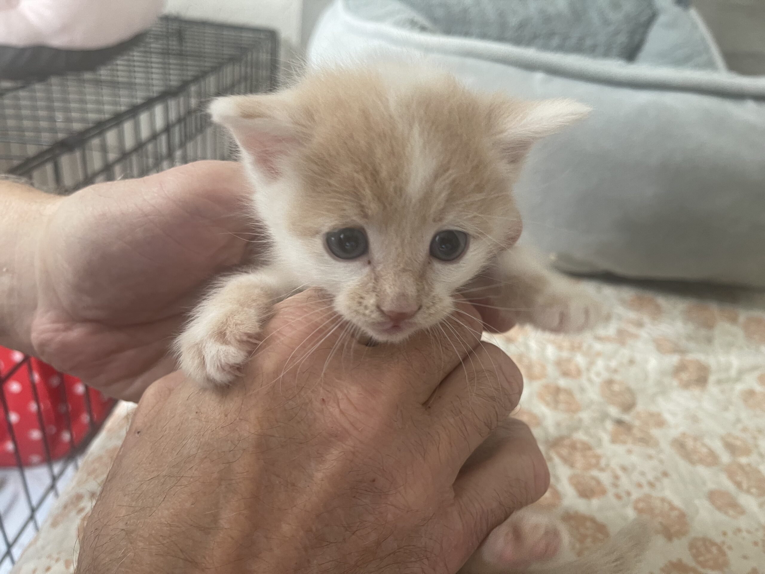 Milo, male, buff tabby with white