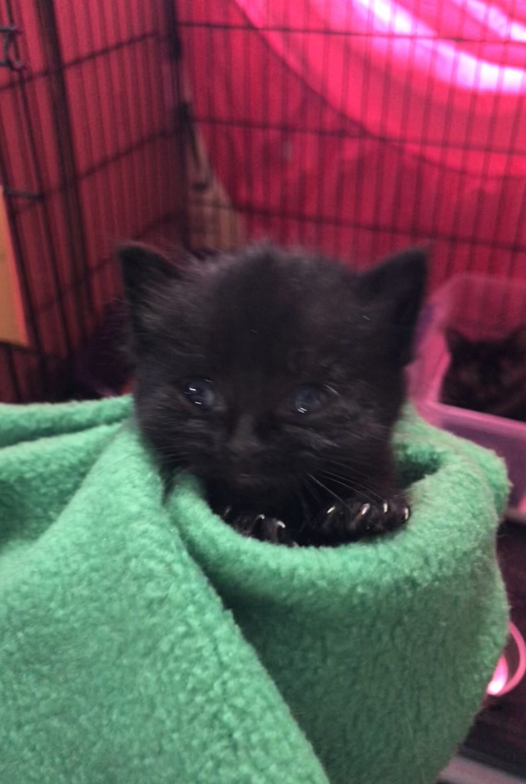 This little Nugget is being nursed and raised by his adopted fur mama Shelby because Nugget's birth mom rejected him. Shelby adopted Nugget as one of her own. Nugget was born March 25, 2026. He will remain with Shelby until he is weaned at about 8 weeks old. He should be ready for adoption by May 25. However, Nugget can be pre-adopted with payment of his $120 adoption fee.