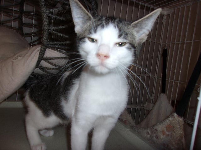 Smiggles is a brave little guy. He gets his jollies chasing dogs in his foster home. He is friendly, playful and curious. Smiggles gets along well with the other kittens and cats in his foster home.